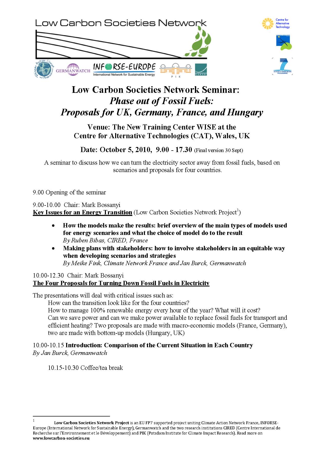 Organised by Low Carbon Societies Network FP7 Project (RAC-France, INFORSE-Europe, Germanwatch, PIK, CIRED),