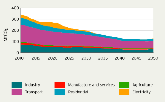 Graph: Sectoral CO2 emissions in the “Additional Measures Scenario” (-73% in 2050)