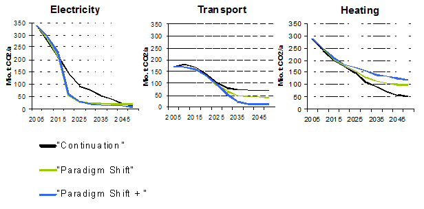 The positive effects for GDP only start in 2015 and household budgets only become lower from around 2025. Until then there is an “investment period” with up to 0.3% lower GDP in one year. Unfortunately, the CO2 reductions are below the objective of a “Factor Four” - 75% reduction of emissions over the 1990-2050 period.